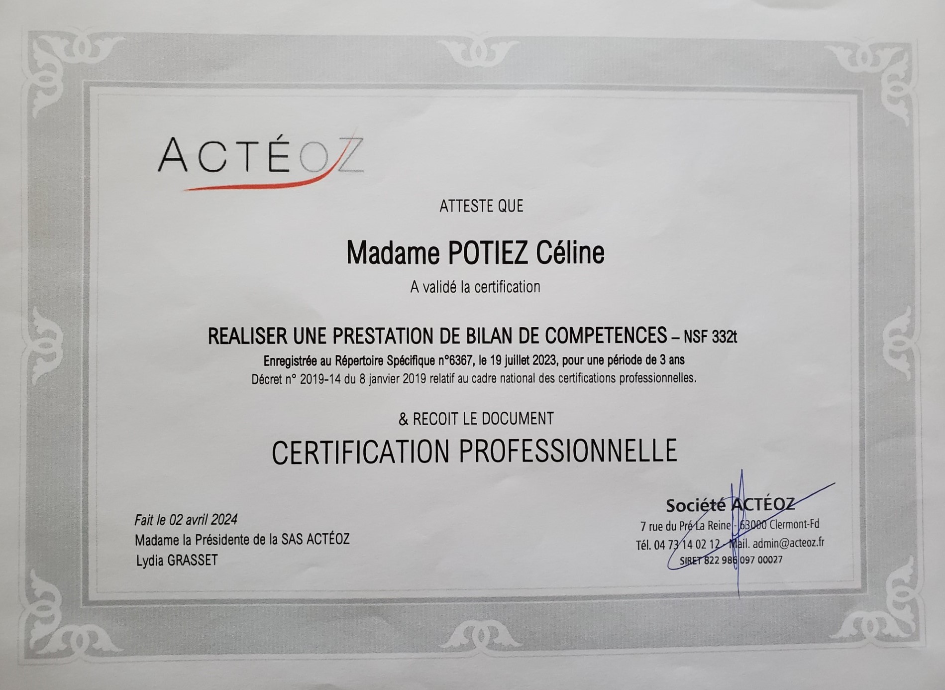 Moins de six mois après la fin de mon bilan, je démarrais ma formation certifiante, puis je quittais mon poste en CDI. Et c'est ainsi que j'ai créé le projet ACSR Compétences.