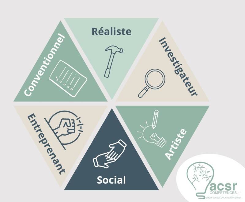 💡 Théorie avancée dans les années 60 par le psychologue et sociologue américain John Holland, elle permet d'étayer l'orientation vers un métier ou un secteur d'activité en déterminant les intérêts professionnels d'une personne.